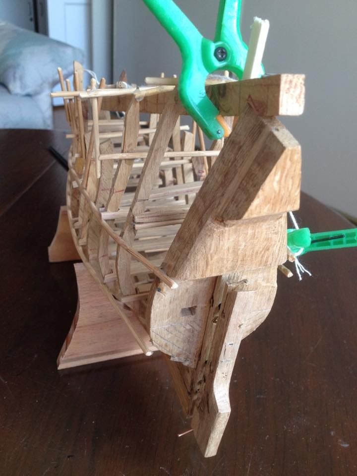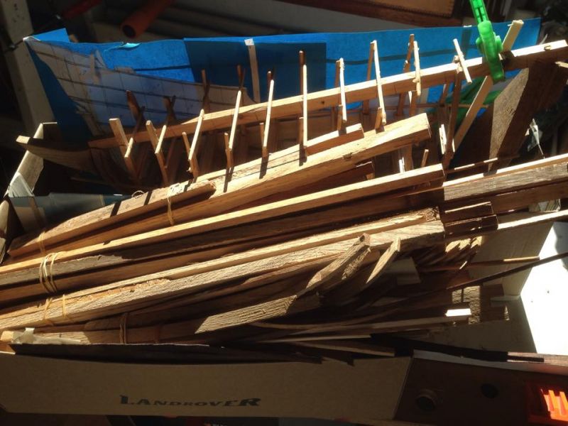 1e balklaag zit in het schip nu verder met de masten en boegspriet.