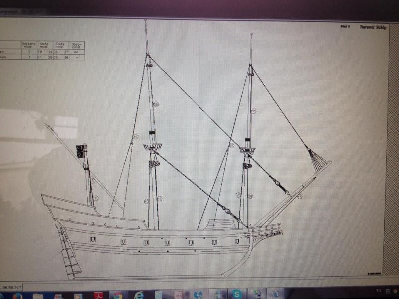 Willem Barents is een klein scheepje.De schaal die ik hanteer is schaal 1op 50 dus zij is rond de 26cm lang. De uitvoering is een kiel met spanten,het is de bedoeling 1 kant dicht en de andere kant open en proberen wat er toen der tijd inzat.Het wordt uitgevoerd in geheel eikenhout.